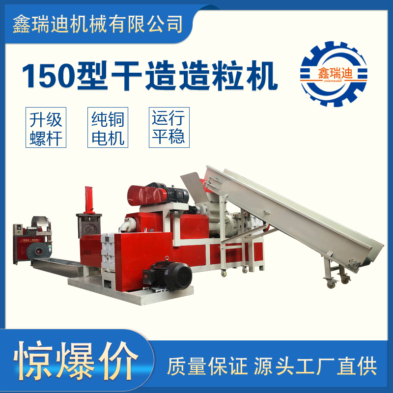 幹造膜料造粒機可分為幹(gàn)造和水造,兩種機型不一樣,是將廢舊塑料進行(háng)分類,將廢舊編織袋送入破碎機(jī)進行破碎(suì),然後經過磨擦清(qīng)洗機清洗,將破碎清洗好(hǎo)的料放入漂洗池裏漂洗,讓編織袋所含雜質進(jìn)行(háng)分離,雜質沉澱,通過撈料機將(jiāng)我們所需的編織袋破(pò)碎料撈起備用;將漂(piāo)洗好的料通過上料機投入造粒機主機,通過擠壓、輸送、翻滾、加熱(rè)等(děng)程序達到塑化均勻擠出,再經過副機擠壓拉條,冷卻後切粒。